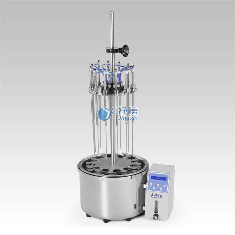 SD-12水浴氮吹儀采用微電腦控制技術(shù)和PID控制方式結(jié)合而成的高精密度控制儀器,其工作原理是將氮?dú)饪焖?、連續(xù)、可控的地吹到加熱樣品表面,根據(jù)被濃縮溶劑的蒸發(fā)速度和沸點(diǎn)、設(shè)定加熱溫度,實(shí)現(xiàn)大量樣品的快速無氧濃縮。水浴氮吹儀包括底座和支架裝置、樣品架和氣體分配系統(tǒng)。試管通過帶彈簧的試管夾和支撐盤來固定位置。每個(gè)樣品位都有數(shù)字編號;氣體通過流量計(jì)到達(dá)氣體分配系統(tǒng),靈活的引導(dǎo)管將氣體導(dǎo)入每個(gè)位置的閥和不銹鋼針,將氣體吹至樣品表面,從而使溶劑快速揮發(fā)。根據(jù)試管大小和溶劑多少,各導(dǎo)氣管可獨(dú)立升降至合適的高度。